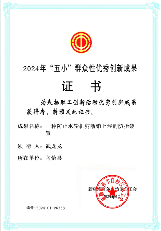 克州新隆公司“五小”群众性创新成果获自治区奖项